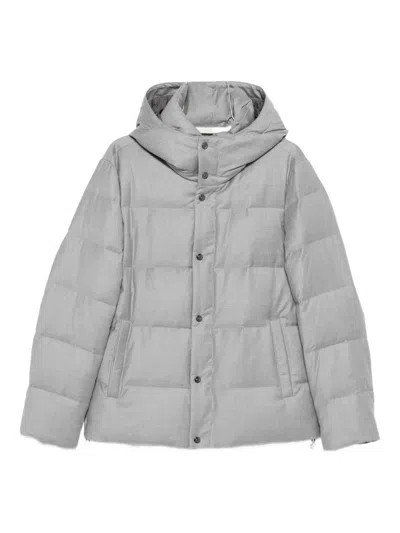 灰色 绗缝设计 连帽领 摁扣 长袖