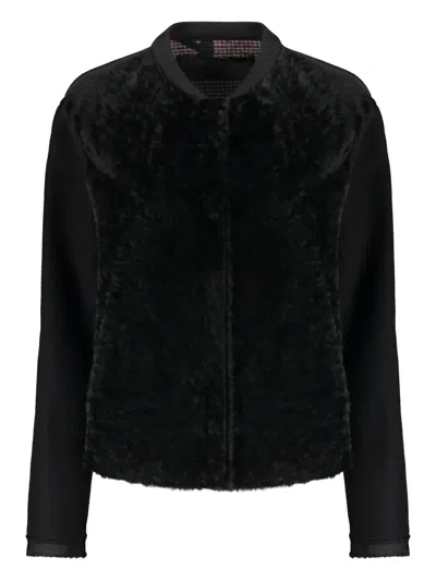黑色 正面饰有隐藏式开合 罗纹袖口和下摆 侧置插袋 棒球衫领