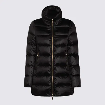 Black down jacket from Moorer featuring high collar, long sleeves, padded, zip fastening, zipped pockets and midi lenght. Composition: 100% Polyester