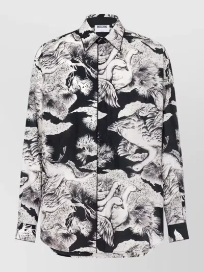 MOSCHINO Button Down Collar Silk Printed Shirt In Black