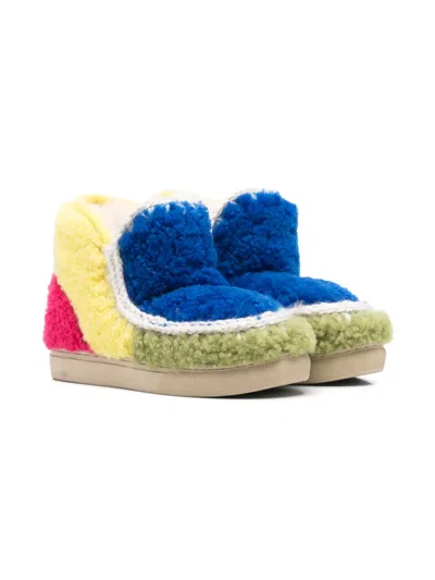 金丝雀黄色 人造皮毛一体衬里 橡胶鞋底 背面饰有logo贴花 圆头