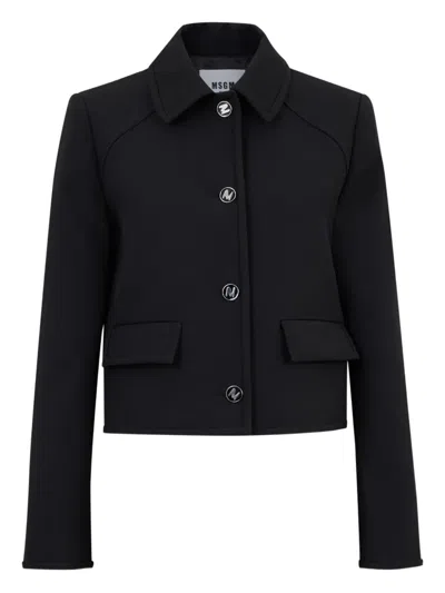 黑色 银色纽扣 尖领 两个正面盖袋 长袖