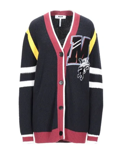 MSGM Cardigans. knitted, contrasting applications, logo, medium-weight knit, v-neck, multicolor pattern, long sleeves, front closure, button closing, no pockets, large sized. 50% Cotton, 50% Acrylic