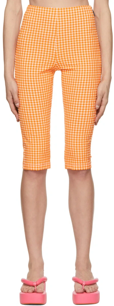 Orange/white gingham check cycling shorts from MSGM featuring gingham check print, high-waisted, knee-length and stretch-design.