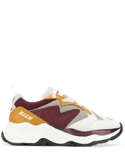 A youthful energy and playful spirit are what Italian brand MSGM encaptures. Inspired by art and modern culture, the MSGM brand creates an exciting new aesthetic which intrigues the eye and which has kindled a worldwide following. These burgundy leather colour block sneakers from MSGM feature a round toe, a lace-up front fastening, a logo patch at the tongue, a branded insole and a white rubber sole.