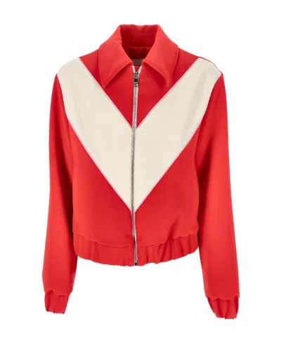 Color-matched long-sleeved sports jacket with logo on the back, classic collar, front zipper, long sleeves, elastic cuffs, elastic hem.