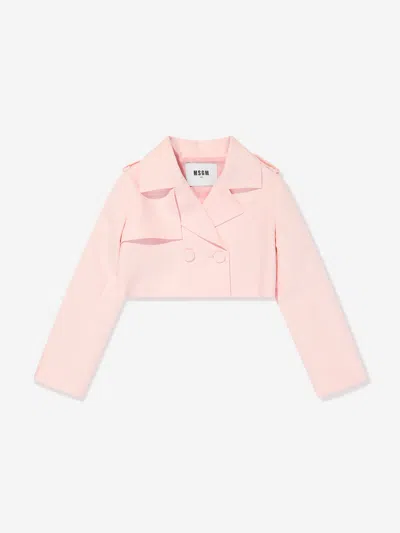 浅粉色 同色系缝线细节 梯形翻领 肩章 长袖 防雨挡片 短款 背面饰有刺绣logo 全衬里 包布扣 双排扣