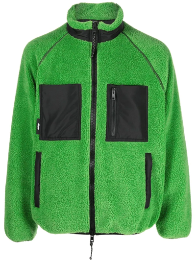 亮绿色、曜石黑色、后置logo贴花、高领、正面饰有拉链、长袖、两个正面贴袋。