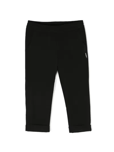 MSGM Kids' Logo-patch Straight-leg Trousers In 黑色