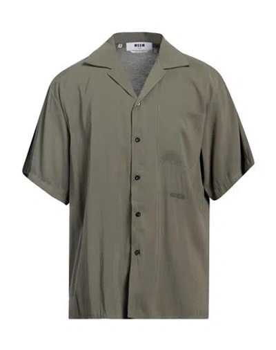plain weave, brand logo, embroidered detailing, solid color, classic collar, short sleeves, button closing, single chest pocket, large sized , Color: Military green , Size: 15
