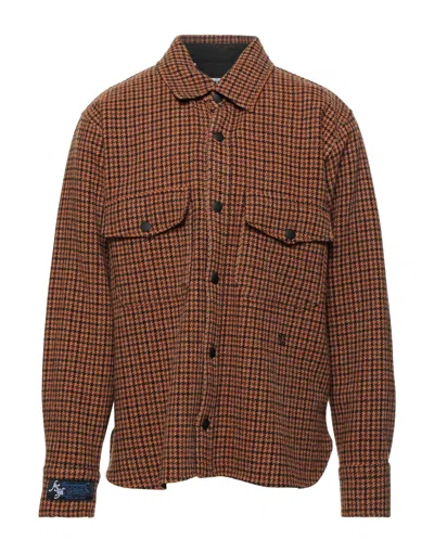 flannel, brand logo, houndstooth, classic neckline, long sleeves, snap button cuffs, unlined, snap buttons fastening, two breast pockets, large sized , Color: Orange , Size: 16