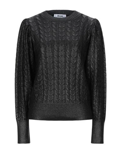 MSGM Sweaters. knitted, laminated effect, no appliqués, solid color, round collar, medium-weight sweater, long sleeves, no pockets, large sized. 50% Wool, 50% Acrylic