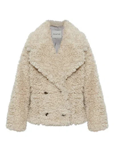 米色 泰迪熊纹理 双排拉链 宽版平驳领 侧置口袋 长袖