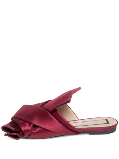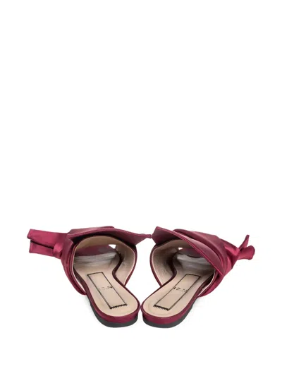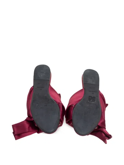 酒红色 缎面 蝴蝶结饰缀饰 宽版蝴蝶结饰鞋面 平底 露趾设计 状态:很好。这款典藏臻品商品状态很好,略有使用痕迹,可能存在于材料或电镀褪色及划痕。