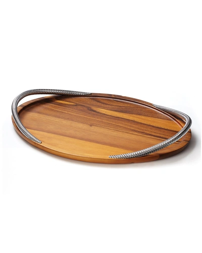 Opposites attract. Combining lustrous braided handles with sleek acacia wood, this beautifully crafted serving tray lends modern elegance to entertaining. Designed by Sean O'Hara for Nambe. Other Dining Categories - Serveware