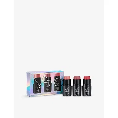 The NARS Mini Multiple Holiday Trio presents a holiday-edition collection of the brand's iconic multi-purpose sticks. Featuring three versatile shades, the creamy, blendable formula glides onto the skin, delivering a sheer wash of buildable colour to the eyes, lips and cheeks. The convenient, travel-sized sticks are perfect for creating luminous looks on the go. Set Contents: Mini Multiple - Orgasm Crave 3.5g A multi-purpose cream stick in a peachy-pink shade with golden shimmer. The unique formula offers a sheer, natural-looking finish that can be built up for more intensity. Mini Multiple - Fling 3.5g A versatile stick in a shimmering nude rose hue. This cream-to-powder formula blends effortlessly, providing a luminous flush of colour for a radiant-looking complexion. Mini Multiple - Dolce Vita 3.5g A multi-use stick in the iconic dusty rose shade. The mistake-proof colour stick melts into the skin, imparting a soft, sophisticated glow to your makeup look.