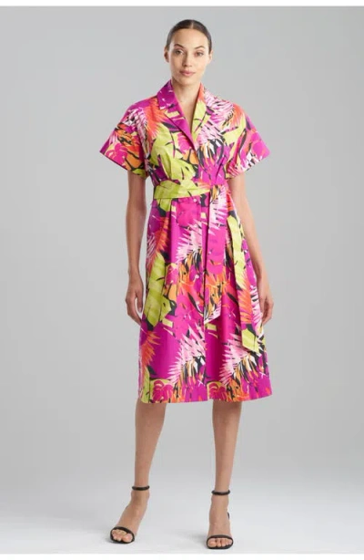 Introducing the N Natori Palms Poplin Shirt Dress, a stylish and comfortable addition to your wardrobe. This shirt dress in vibrant fuchsia is perfect for any occasion, measuring approximately 45 inches from shoulder to hem. It features a button-down front and is made from 100% cotton for a lightweight and breathable feel. Easy to care for, simply machine wash cold with similar colors, gentle cycle, do not bleach, line dry, and cool iron. Imported from the brand known for sleep and loungewear inspired by the East, Natori. Elevate your look with this chic and versatile dress today!