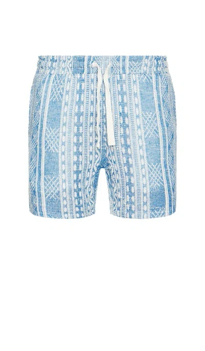 Nikben Encinitias Shorts in Blue. Size L, M. 47% cotton 45% polyester 8% viscose. Machine wash. Drawstring closure. Side seam pockets. Lightweight knit fabric. Item not sold as set. Shorts measure approx 18 in length. NBEN-MF6. 6566.