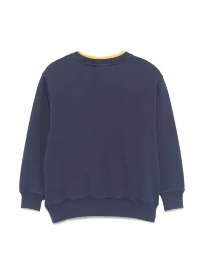 海军蓝色 罗纹袖口和下摆 胸前饰有logo印花 落肩