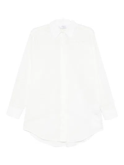 白色 钮扣 尖领 弧形边