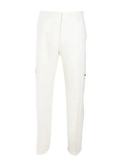 white concealed front fastening belt loops two side slit pockets two side cargo pockets