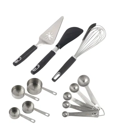 The Oneida stainless steel baking tool bundle is the perfect assortment for all your baking and serving needs. The whisk has a silicone side scraper shaped to the contour of your mixing bowl and epoxy sealed wires. The cake server has serrated edge for seamless food chopping, integrated pie scoring guide for dividing even slices, stainless steel end for strength and durability. The silicone spatula has different shaped edges to match contour of pot, pan and heat resistant silicone to 428 degrees farenheit. The stainless steel measuring cups contain four cups with measurments in both imperial and metric units. The stainless steel measuring spoons contain five spoons with measurements in both imperial and metric units. Home - Kitchen Kitchen - Bakeware (new)