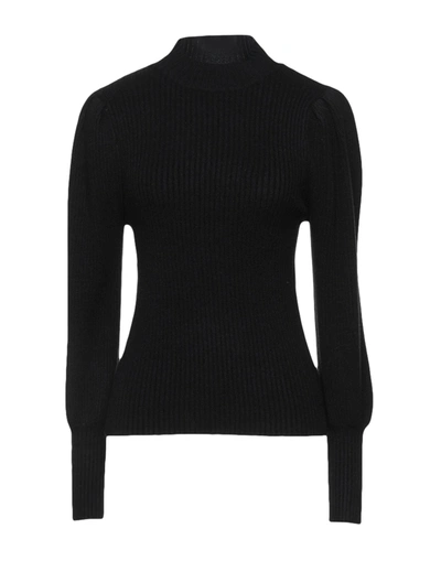 knitted, ribbed, lightweight knit, folds, solid color, turtleneck, long sleeves, puff sleeves, no pockets , Color: Black , Size: XL