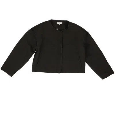 黑色 绗缝 正面饰有隐藏式开合 圆领 长袖 两个侧置平袋 平直下摆