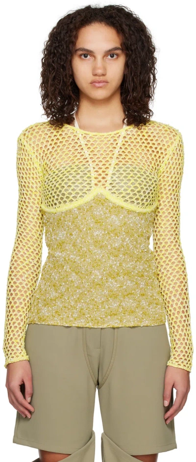 Open crocheted cotton-blend bouclé sweater. · Paneled construction · Round neck Supplier color: Multi/Yellow