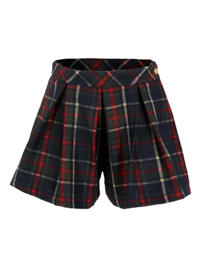 Color: Blue Blue pleated tartan shorts, with adjustable waist thanks to an internal elastic band with buttons and side zip and button fastening. 69% Polyester, 29% Viscose, 2% Elastane. Machine wash at 30°C.