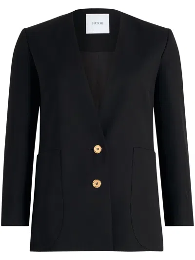 black front button fastening two front patch pockets buttoned cuffs central rear vent
