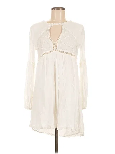Patrons of Peace Casual Dress, Size: Medium. Item Details: Ivory, Keyhole Neckline, Short Length, Long Sleeve, Frayed Edges, Junior Dresses, 100% Rayon