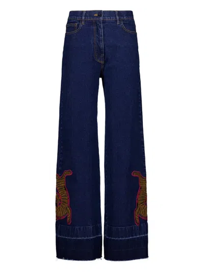 靛蓝色 隐藏式拉链纽扣开合 经典五口袋 腰带袢 对比缝线