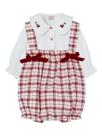 红色 缀饰领 长袖 钮扣 缩褶袖口