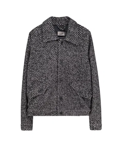 黑色 纽扣开合 尖领 盖袋 人字纹