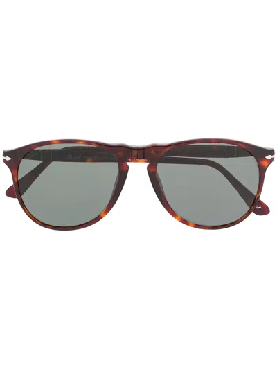 Havana acetate angular sunglasses from Persol featuring an angular body and dark tinted lenses. This item comes with a protective case.