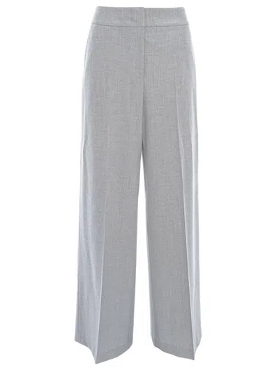 PESERICO Micro Houndstooth Palazzo Trousers In Gray