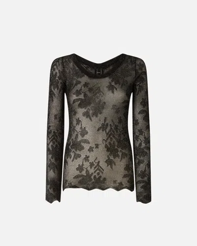 PINKO - Floral Lace Sweater - M In Black