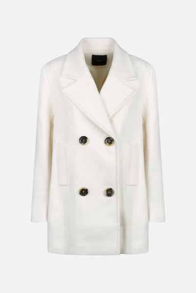 White double-breasted short coat by Pinko with two welt pockets on the front. Relaxed fit, brand logo on the inside label.Composition:75% Wool, 25% Polyamide