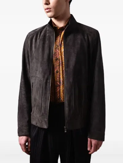 深灰色 正面饰有拉链开合 两侧饰有拉链口袋 无领设计 长袖
