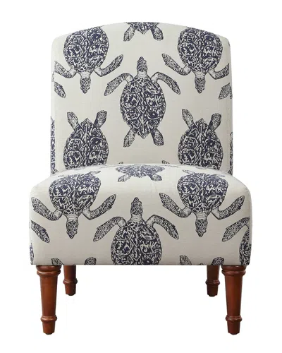 Sporting a whimsical sea turtle print, this Hawksbill Accent Chair is a perfect pick for reading nooks, dining rooms and more. Its armless design allows for an easy fit in any corner, while a snug poly/cotton blend upholstery cast in a palette of navy and cream injects a welcoming feel throughout any space.