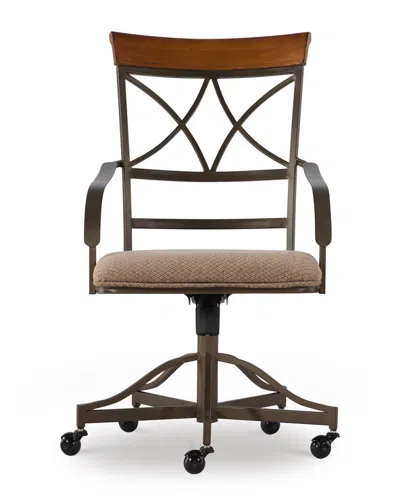 Color/Pattern: Brushed Faux Medium Cherry Wood; Matte Pewter & Bronze Metal Brushed Faux Medium Cherry Wood; Inmatte Pewter & Bronzein Metal Rolling Casters Provide Easy Mobility Seat Upholstered In A Diamond Pattern Taupe/Beige Fabric - 100% Polyester Brushed Faux Medium Cherry Wood Matte Pewter And Bronze Metal Measures 22In X 26In X 38.5In Tall, Seat Height: 18.75In Metal, Particleboard, Oak, Fabric - 100% Polyester, Polyurethane Foam Pad Some Assembly Required Set Of 2 Imported Limit Of 10 Items Per Purchase