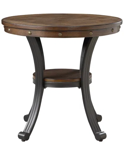 Color/Pattern: Oak Oak A Beautiful Mixture Of Metal And Wood Feature A Beautiful Oak Woodgrain Veneered Top Apron Feature Nailheads With A Sturdy Metal Base With Shelf Measures 24Inw X 24Ind X 23Inh Mdf, Oak Veneer, Metal Frame, Antique Brass Nailheads Some Assembly Required Imported Limit Of 10 Items Per Purchase