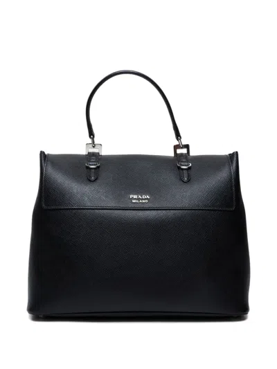 2015-2025年 黑色 Saffiano 皮质 单个顶置手柄 可拆卸肩带 双扣环 翻盖开合 状态:很好。这款典藏臻品商品状态很好,略有使用痕迹,可能存在于材料或电镀褪色及划痕。