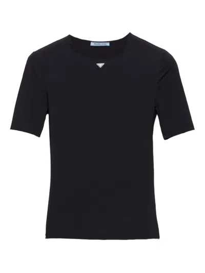 黑色 三角形珐琅logo 圆领 短袖 平直下摆