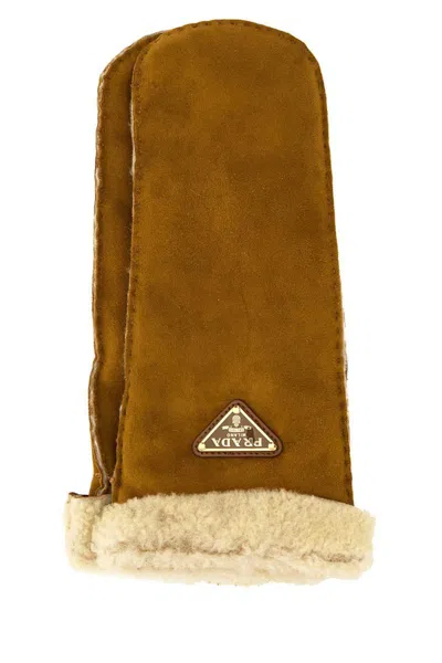 PRADA Finished Luxurious Suede Gloves In Beige O Tan