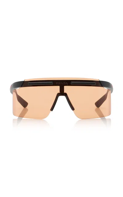First presented in 1997; Prada Linea Rossa combines fashion and sports in a collection that blends innovation; design and function.Designed for an active lifestyle; these sunglasses have rimless mask frames with flexible wraparound temples that feature the label's iconic red stripe. The ergonomic rubber nose pad ensures a comfortable fit.