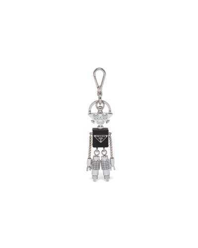 Prada leather keychain100% leather; hardware 100% metalRobot design, polished hardware, enamelled triangle logoHeight 9.5cmWipe cleanMade in ItalyIntended for collectors of 14 years of age and older. Not to be used or sold as a toy.