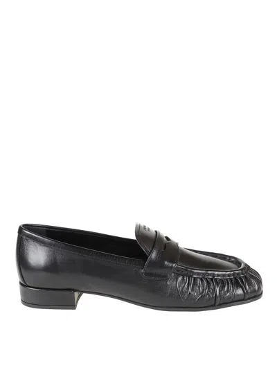 PRADA Rounded Toe Loafers With Textured Detailing And Low Block Heel In Black