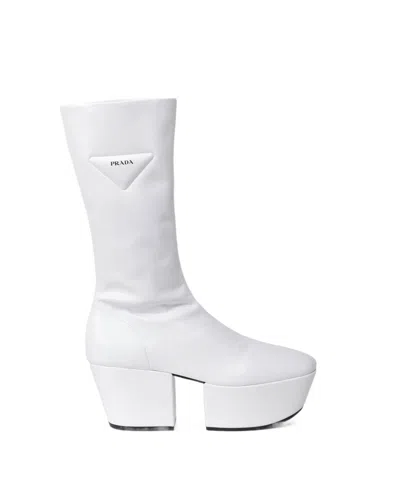 PRADA Triangle Logo Platform Sole Boots In Bianco
